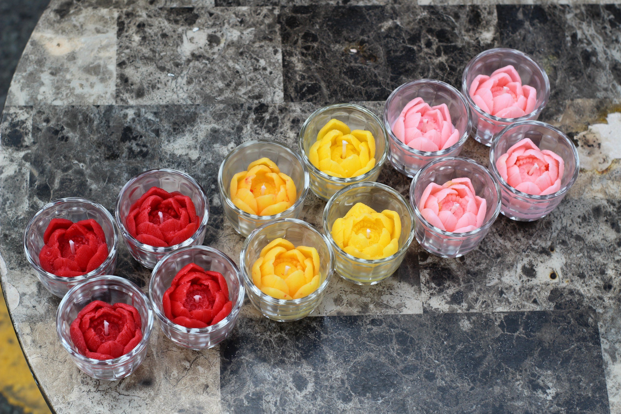 ✨Combo 12 Ly Nến Hoa Sen Không Khói Không Mùi Từ Shop R2D 3 Màu Đỏ-Vàng-Hồng Dùng Cúng Dường, Trang Trí.