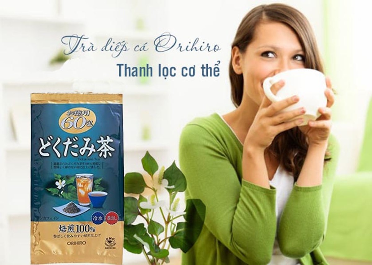 - Trà diếp cá Orihiro hỗ trợ điều trị mụn nội tiết, giúp kích thích tiêu hóa, cân bằng nội tiết tố cơ thể giúp duy trì sức khoẻ, sắc đẹp.