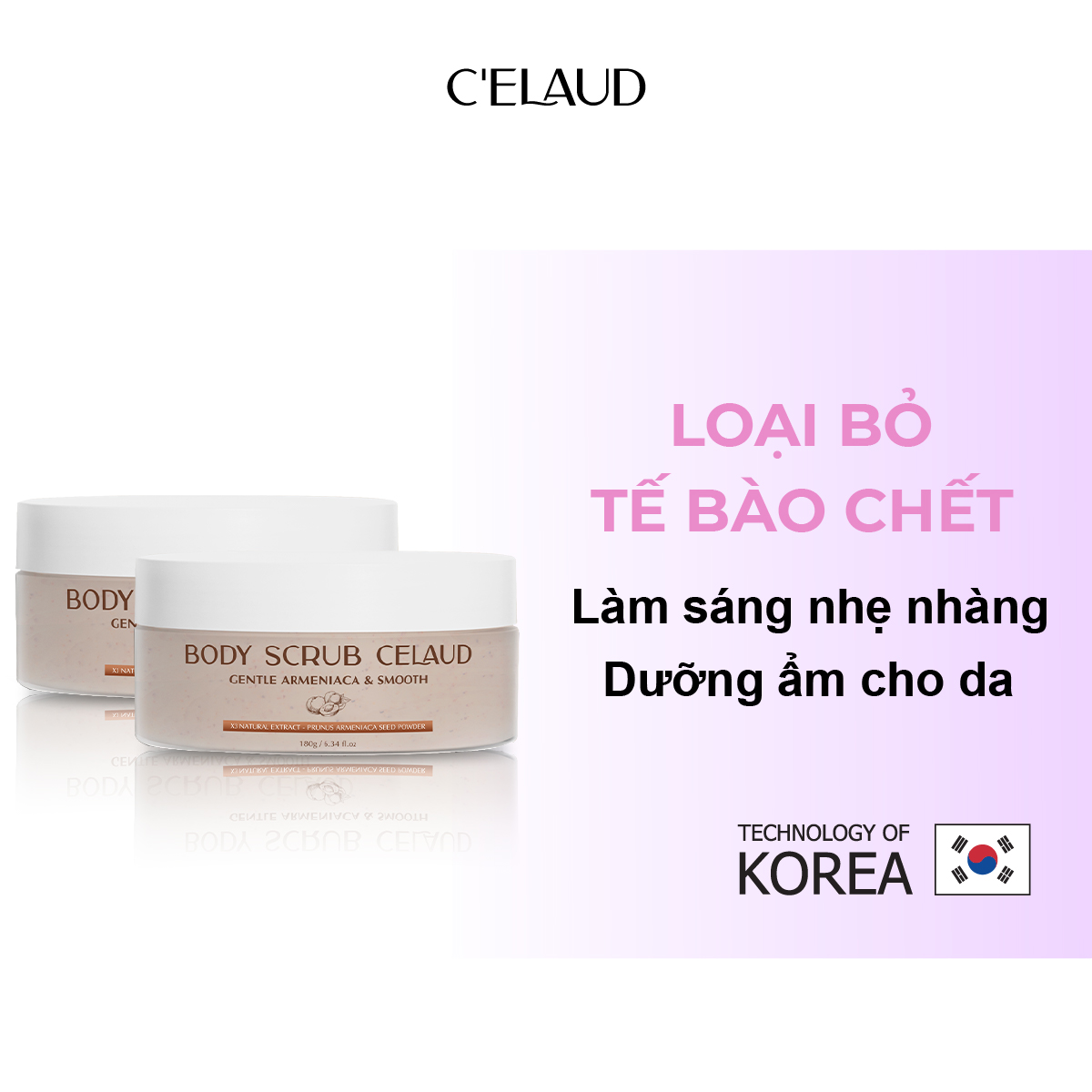 Tẩy tế bào chết, tái tạo và làm mịn da Body Scrub Celaud - Công nghệ Mask & Scurb kết hợp các dưỡng chất làm mềm lớp sừng, tế bào chết trên da. Sau