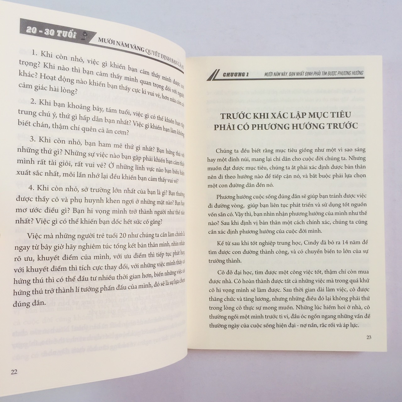 à khoảng thời gian này là mười năm then chốt của cả cuộc đời, trong thời kì này, thế giới quan, nhân sinh quan, giá trị quan của bạn sẽ được định hình. Rất nhiều thói quen mà bạn nuôi dưỡng kể từ khi bước ra xã hội sẽ có những ảnh hưởng quan trọng đối với tương lai của bạn.