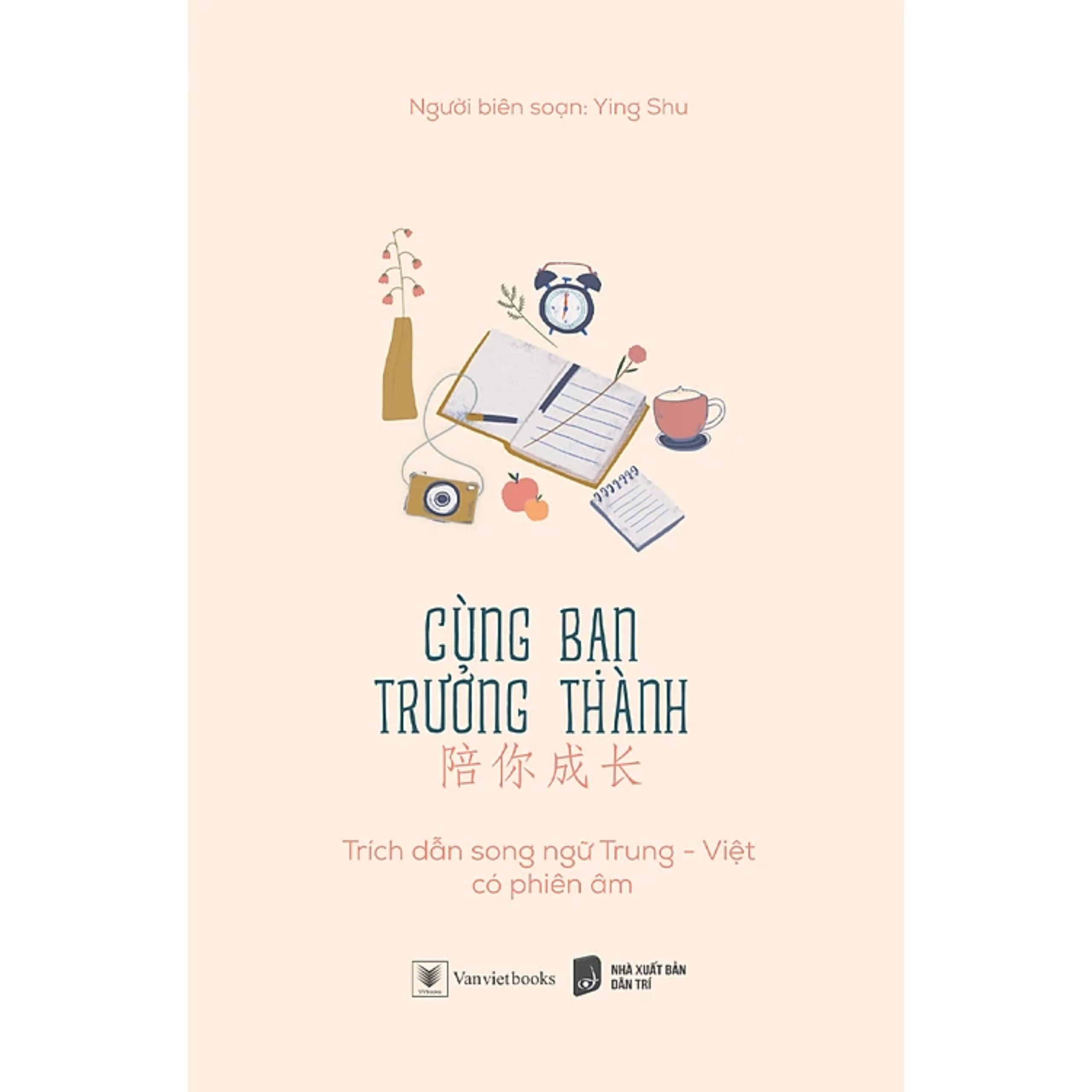 - Cùng Bạn Trưởng Thành “CÙNG BẠN TRƯỞNG THÀNH” - Cuốn sách lan tỏa đến bạn thông điệp “Không ngừng học tập, không ngừng nỗ lực” trên con đường khẳng định chính mình. Nếu bạn đang tìm kiếm một người bạn đồng hành trong việc học tập ngoại ngữ và phát triển bản thân thì cuốn sách “Cùng bạn trưởng thành” chắc chắn là cuốn sách dành cho bạn. Đúng như tên gọi của nó, cuốn sách sẽ là người bạn sát cánh bên bạn mỗi ngày, ngoài ra còn truyền tải cảm hứng và thông điệp sống tích cực thông qua những trích dẫn ngắn song ngữ Trung - Việt, qua đó bạn có thể vừa trau dồi thêm kiến thức mới, vừa làm mới thế giới nội tâm của bản thân. Với ngoại hình nhỏ gọn và vô cùng xinh xắn, bạn cũng có thể dễ dàng sách mang theo bên mình để cuốn sách trở thành bạn đồng hành không thể thiếu trong cuộc sống và có thể thưởng thức bất cứ lúc nào bạn rảnh rỗi. “Mỗi một việc mà bạn đang cố gắng làm, chắc chắn sẽ đơm hoa kết trái vào những ngày tháng sau này” - Hi vọng đây sẽ là cuốn sách “kim chỉ nam” giúp bạn ngày một hoàn thiện bản thân, mạnh mẽ trưởng thành, làm một phiên bản chính mình hoàn hảo nhất.