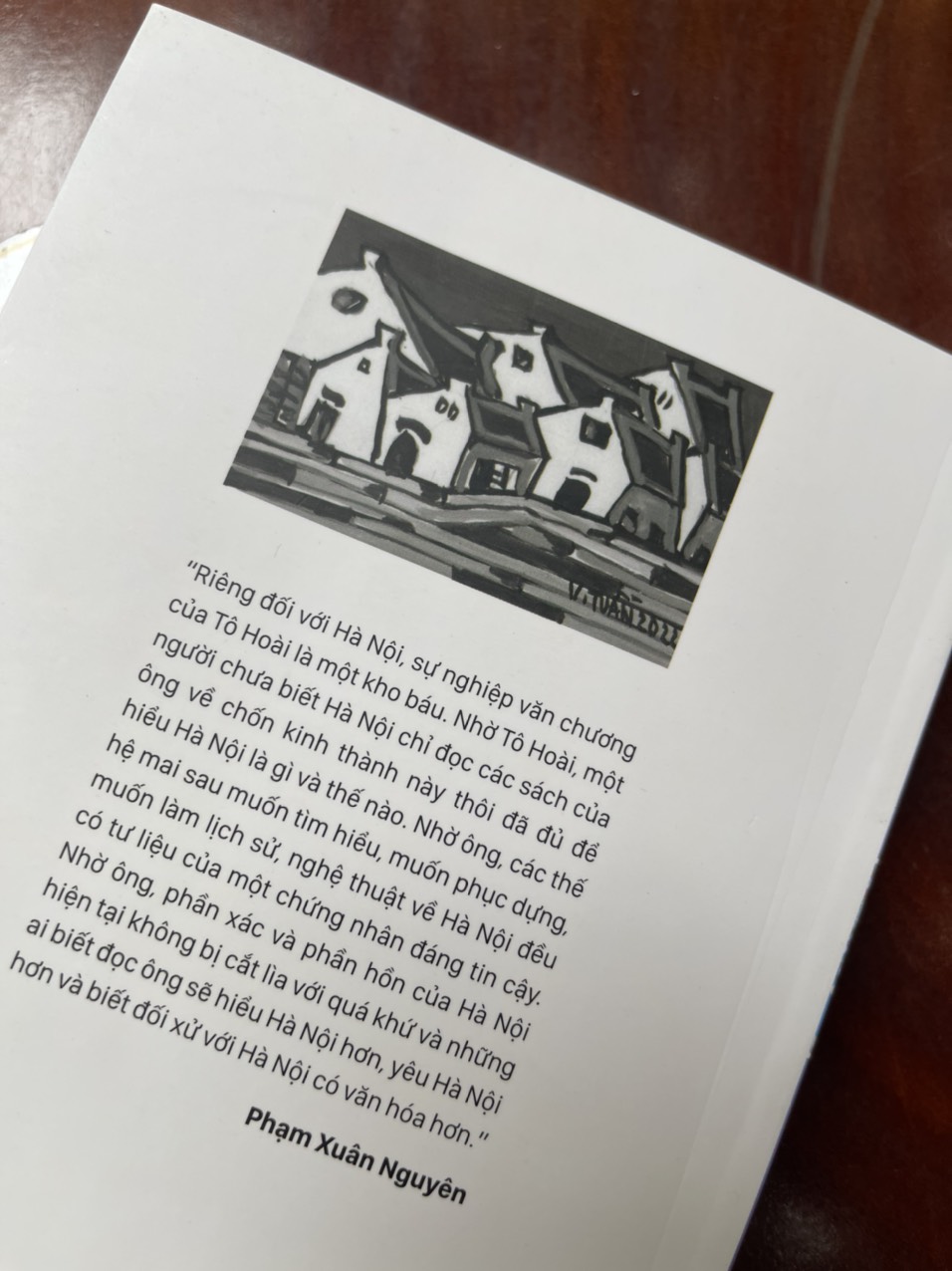“Riêng đối với Hà Nội, sự nghiệp văn chương của Tô Hoài là một kho báu. Nhờ Tô Hoài, một người chưa biết Hà Nội chỉ đọc các sách của ông về chốn kinh thành này thôi đã đủ để hiểu Hà Nội là gì và thế nào. Nhờ ông, các thế hệ mai sau muốn tìm hiểu, muốn phục dựng, muốn làm lịch sử, nghệ thuật về Hà Nội đều có tư liệu của một chứng nhân đáng tin cậy. Nhờ ông, phần xác và phần hồn của Hà Nội hiện tại không bị cắt lìa với quá khứ và những ai biết đọc ông sẽ hiểu Hà Nội hơn, yêu Hà Nội hơn và biết đối xử với Hà Nội có văn hóa hơn.” (Phạm Xuân Nguyên)