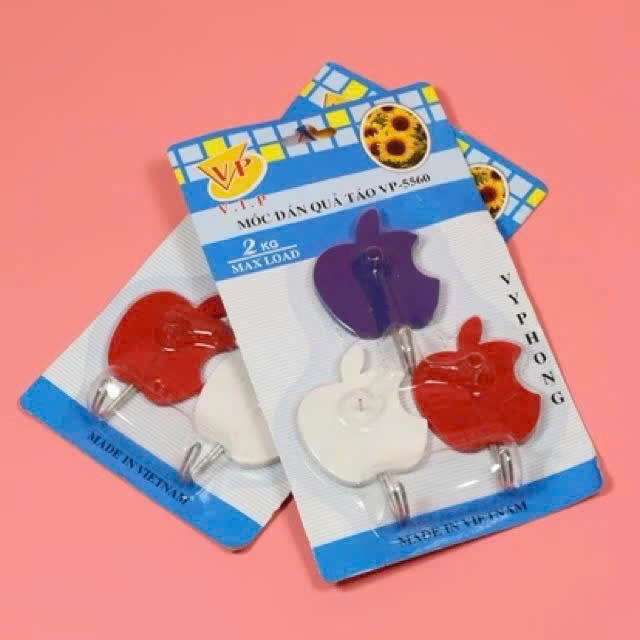 Mô tả sản phẩm chi tiết: Thiết kế đẹp mắt – hình quả táo nhiều màu (đỏ, tím, trắng), nhỏ gọn, dễ dàng phối hợp với không gian sống. Chịu lực chắc chắn đến 3Kg, phù hợp treo chìa khóa, khăn, túi xách, đồ nhà bếp, đồ dùng cá nhân… Vòng móc inox chống gỉ + đinh thép đi kèm, giúp móc treo bền chắc và an toàn khi sử dụng lâu dài. Dán được trên nhiều bề mặt: tường gạch men, gỗ, kính, inox, nhựa cứng... Sản phẩm Made in Vietnam, chất lượng cao, tiện dụng cho gia đình và văn phòng. Bộ sản phẩm gồm: 3 móc dán tường hình quả táo VP-5560. Phù hợp cho: treo vật dụng trong phòng khách, phòng ngủ, nhà tắm, nhà bếp, văn phòng. Tiện lợi – bền đẹp – giá tiết kiệm cho mọi gia đình.