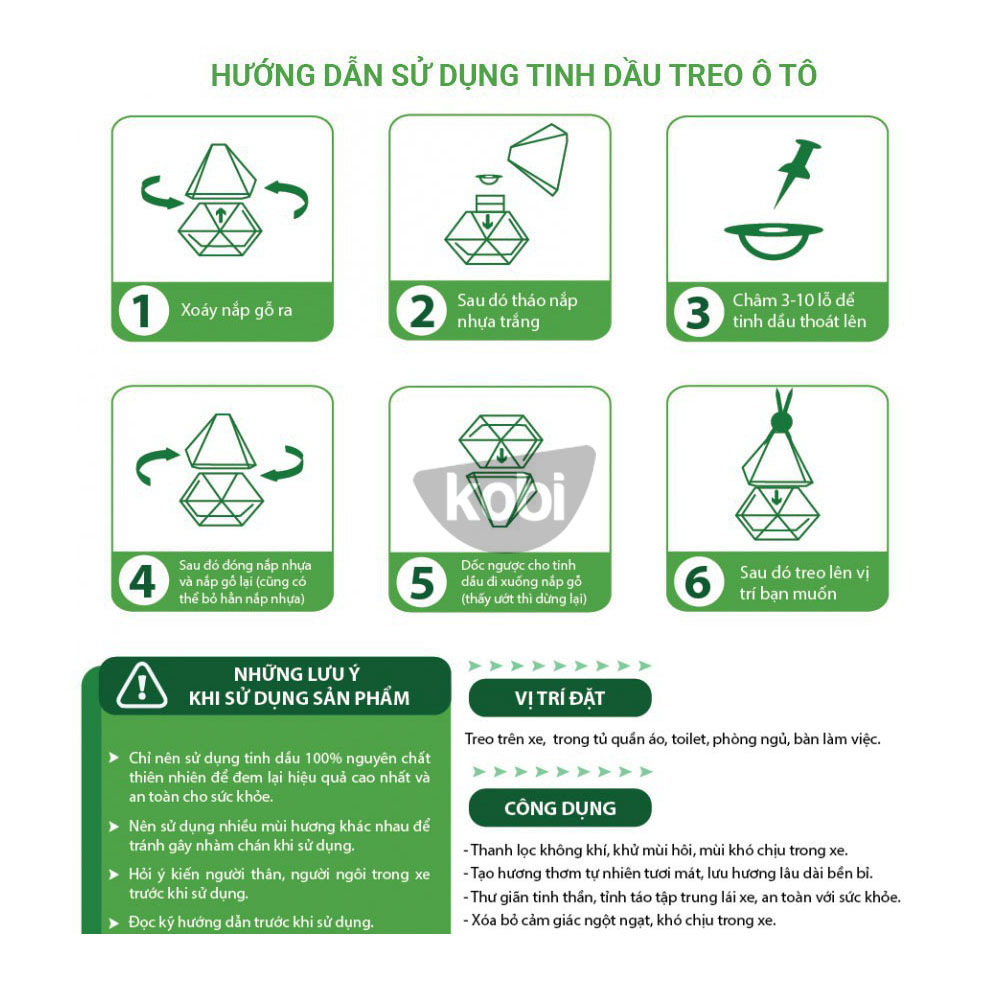 Tinh dầu treo xe KOBI Combo 3 tinh dầu ngọc lan tây, phong lữ, oải hương KOBI treo xe ô tô, treo phòng ngủ Công dụng của tinh dầu treo xe ô tô :