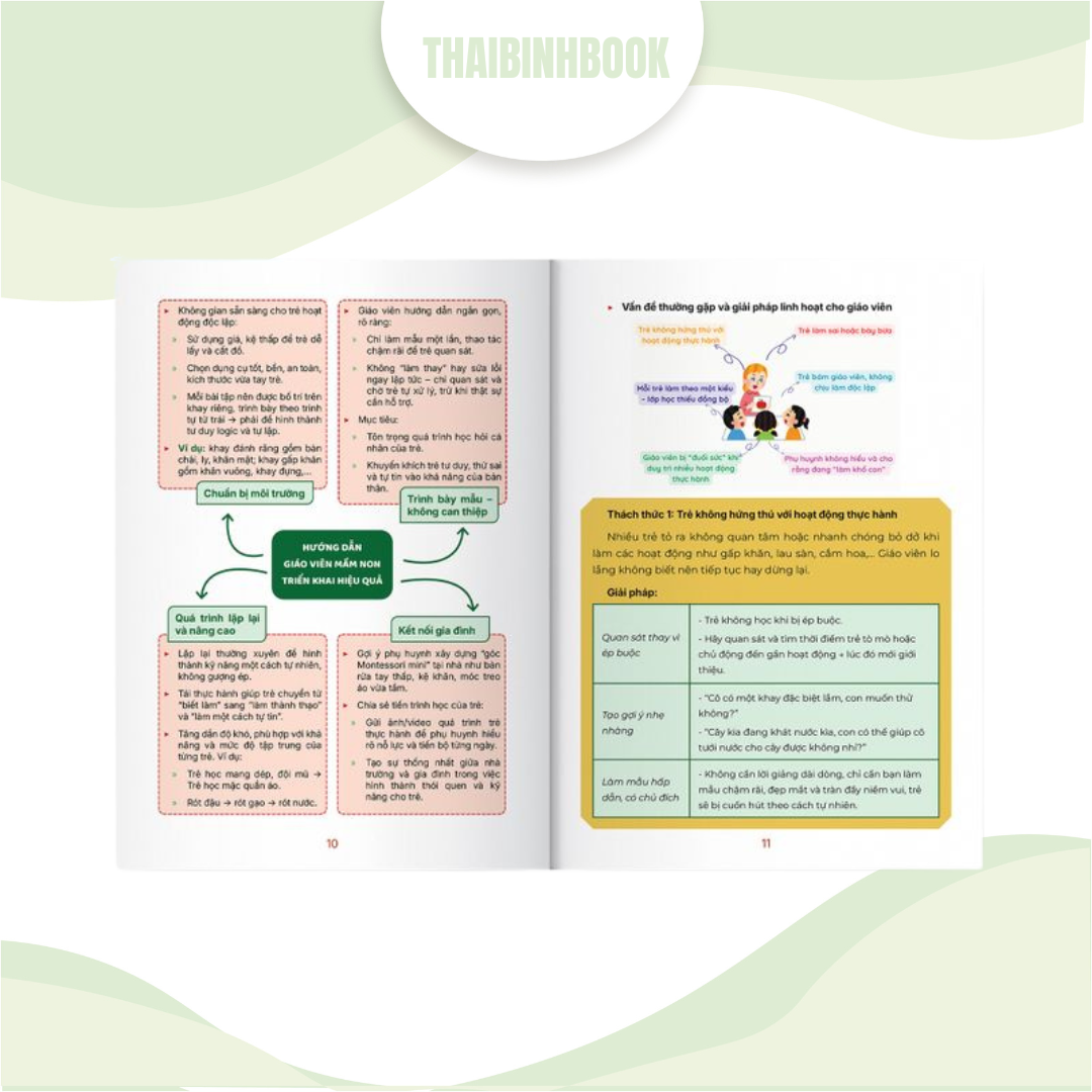 • Nội dung chính: Cuốn sách này là một cẩm nang thực hành toàn diện, giúp giáo viên hiểu và áp dụng các phương pháp giảng dạy hiện đại. Nội dung được chia thành 4 phần, bao gồm: đọc vị cảm xúc trẻ nhỏ, các phương pháp giảng dạy đặc thù cho trẻ mầm non (qua trò chơi và yêu thương) và trẻ tiểu học (khơi nguồn cảm hứng), cùng với nghệ thuật quản lý lớp học và cách giữ lửa với nghề. Sách có nhiều ví dụ minh họa và được trình bày một cách khoa học, giúp giáo viên dễ dàng áp dụng.