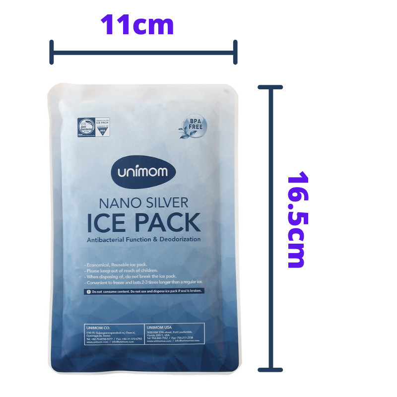 Combo 4 túi đá khô diệt khuẩn unimom + tặng 5 túi zipper 15 x 20cm Sản xuất tại : Hàn Quốc Đá khô cho phép bảo quản sữa cho bé khi bạn di chuyển xa Sản phẩm Thích hợp sử dụng dùng trong gia đình như chườm lạnh vết thương do bầm tím, nhức mỏi tay châ Thương hiệu: Unimom Kích thước sản phẩm (D x R x C cm) : 15x10x2 Trên mặt túi đá khô có tích hợp nano bạc diệt khuẩn giúp cho sữa luôn trong môi trường sạch sẽ an toàn. Túi đá khô có thể sử dụng lại nhiều lần, tiết kiệm cho mẹ và gia đình Kích thước nhỏ gọn, tiện lợi để mẹ và gia đình mang theo giữ lạnh sữa mẹ hoặc thức uống cho bé. Hướng dẫn sử dụng túi đá khô diệt khuẩn Unimom Cho túi vào trong ngăn đá tủ lạnh cho đông cứng túi lại, (tối thiểu 2 tiếng đồng hồ trước khi sử dụng, không xếp chồng các túi đá khô lên nhau vì sẽ rất lâu đông cứng lại). Đặt bình trữ/túi trữ sữa cùng đá khô vào trong túi giữ nhiệt rồi đậy nắp lại.