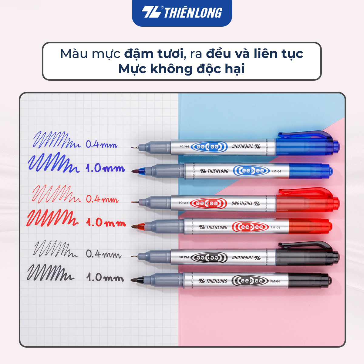 Bút lông dầu Thiên Long PM-04 là sản phẩm mới được sản xuất theo công nghệ hiện đại, đạt tiêu chuẩn chất lượng quốc tế, kiểu dáng được cải tiến ấn tượng. Sản phẩm