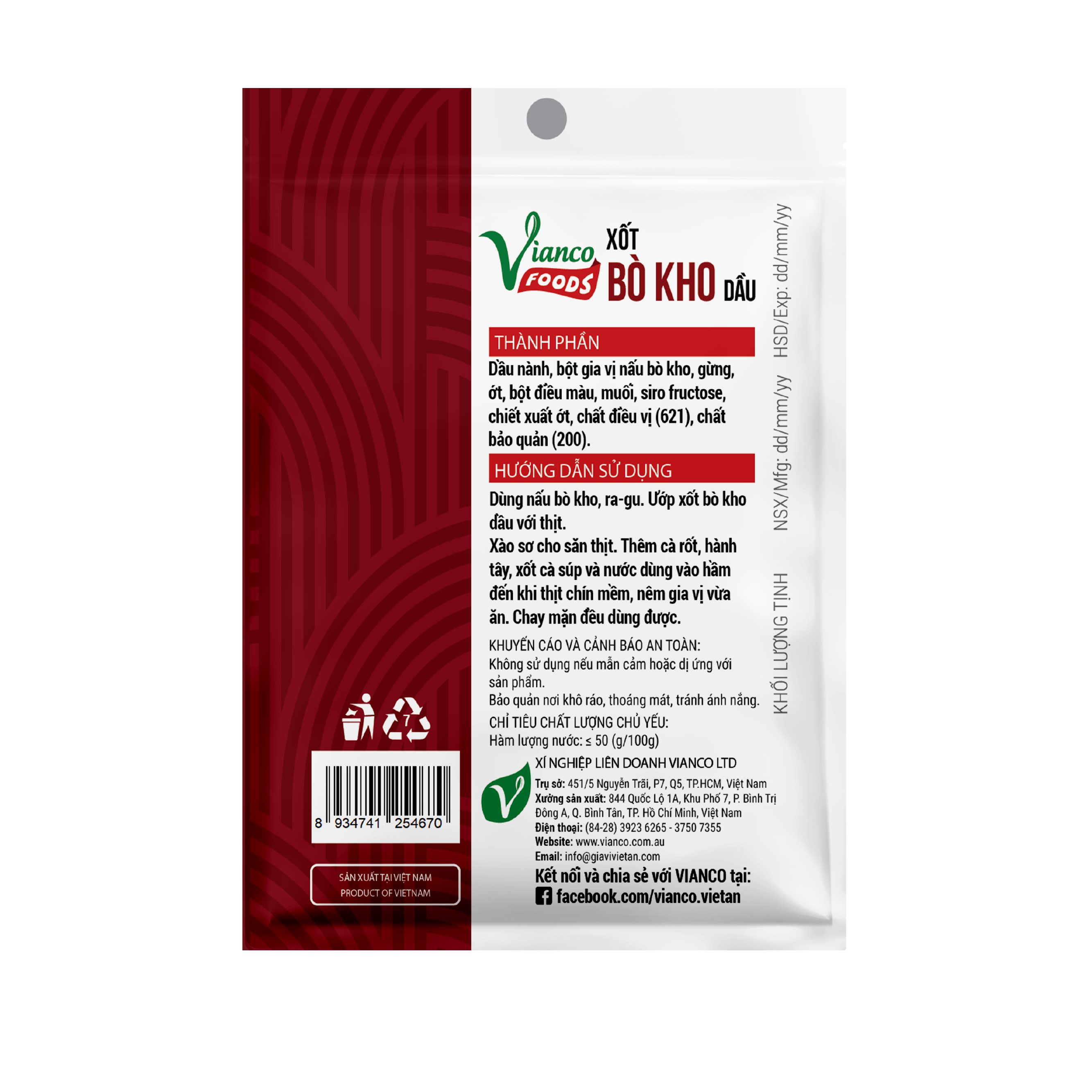 Bột Gia Vị Bò Kho ViancoFoods_Ướp đơn giản - nấu dễ dàng. Một trong những bí quyết nấu bò kho chuẩn đơn giản nhất, đậm đà chuẩn vị. KẾT TINH 100% NGUYÊN LIỆU THIÊN NHIÊN
