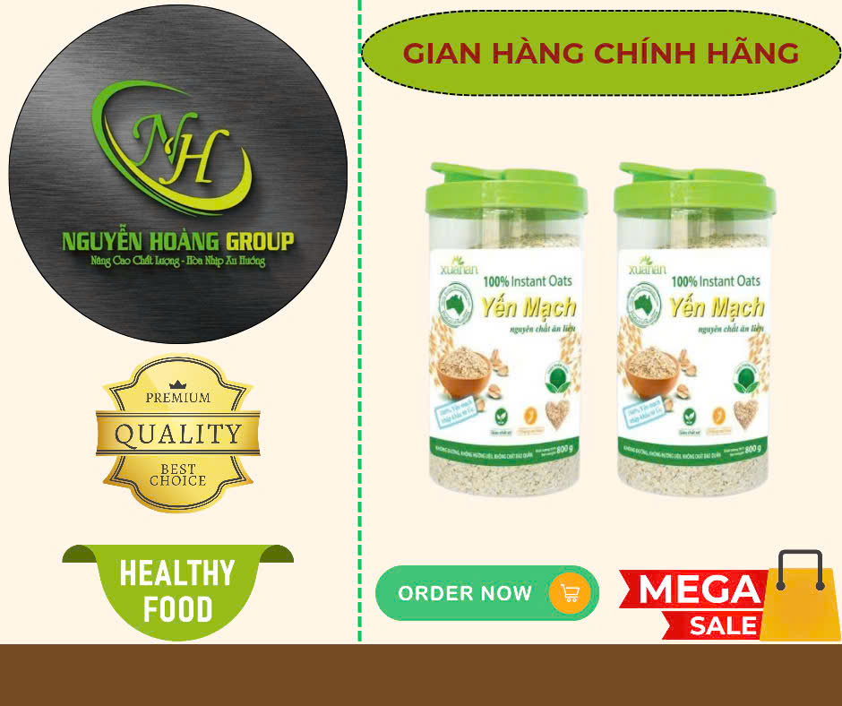 YẾN MẠCH NGUYÊN CHẤT ĂN LIỀN – HỘP 800G Yến mạch là loại ngũ cốc giàu chất xơ, giàu đạm, vitamin và dưỡng chất tự nhiên. 100% Yến mạch nguyên chất Xuân An (Instant Oats)