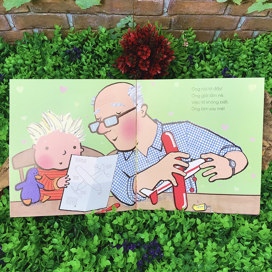 Combo (6 Tập): Sách - Cả Nhà Thương Nhau Tác giả: Lời: Giles Andreae; Tranh: Vanessa Cabban Dịch giả: Thùy Dương Độ tuổi: 2-6 tuổi Kích thước: 20.5x22.1 Nhà xuất bản: NXB Thanh Niên Năm xuất bản: 2019 Số trang: 28 LỢI ÍCH CỦA SÁCH: NUÔI DƯỠNG TÌNH YÊU GIA ĐÌNH TRONG CON CHỈ TỪ BỘ SÁCH CẢ NHÀ THƯƠNG NHAU Bạn có thường xuyên nói những lời yêu thương với con mình không? Nhiều bà mẹ cho biết, khi con lớn, những lời âu yếm ngày càng ít đi, vì ngại ngùng, vì xa cách, vì nhiều lý do khác. Nhưng làm cha mẹ cũng biết một thói quen tốt là hãy bắt đầu từ khi còn nhỏ, nói những lời yêu thương cũng cần phải rèn luyện hàng ngày. Bộ sách chúng tôi giới thiệu đến các bạn hôm nay là một bộ sách vô cùng dễ thương và ngọt ngào, tràn ngập tình yêu thương của các thành viên trong gia đình. Một bộ sách có thể coi như một lời “tỏ tình” ngọt ngào mà cha mẹ, con cái, anh chị em có thể dành cho nhau. BỘ SÁCH GỒM 6 CUỐN SÁCH ĐÓ NHA! Con thương Bố nhường nào: Cuốn sách chứa đầy những câu thơ cảm động và những hình ảnh tươi sáng thể hiện tình yêu của người cha từ góc nhìn của một đứa trẻ mới biết đi. Bố chỉ cho em cách làm bánh xèo, cùng nhau hát những giai điệu vui vẻ, cùng nhau chơi đùa, cùng nhau ăn uống, cùng nhau xem phim khi mẹ đi vắng,… Những khoảng thời gian đơn giản bên bố thật vui vẻ, ngọt ngào và thiêng liêng. Con yêu Mẹ biết bao: “Tớ yêu mẹ lắm nhé. Ôm mẹ thật ngọt ngào. Người mẹ mềm biết bao.” Những câu thơ ngọt ngào, dễ thương trong truyện dành cho trẻ nhỏ này chắc chắn sẽ làm các bà mẹ cảm động. Với những hình ảnh khắc họa những khoảnh khắc trong cuộc sống thường nhật của mẹ và con, cuốn sách đã khắc họa thành công tình mẫu tử bao la cũng như tình yêu của con. dành cho người mẹ tuyệt vời của mình. Nơi “Nhà xinh” bụng mẹ: Chờ đợi một em bé mới đến với gia đình có thể là một thời gian khó hiểu và lo lắng đổi với trẻ nhỏ. Với những câu chuyện nhẹ nhàng khi trò chuyện cùng trẻ này là cách hoàn hảo để trấn an trẻ nhỏ cũng như dạy trẻ biết cách yêu thương em bé mới hơn. Yêu em lắm Bé ngoan: Với những câu thơ thú vị và những hình ảnh đáng yêu, cuốn sách này ghi lại niềm vui và sự phấn khích của trẻ nhỏ khi chào đón một em bé mới vào gia đình. Mềm mại và đáng yêu, đó là lời giới thiệu hoàn hảo về những người anh chị em đang chờ gặp người anh chị em mới của mình. Nụ cười Ông hiền từ: Cuốn sách kể lại niềm vui và sự hào hứng khi được trải qua một ngày bên ông. Thật tuyệt vời và ý nghĩa biết bao khi được cùng ông vui chơi mỗi ngày và học được bao điều thú vị phải không? Vòng tay Bà âu yếm: Từ những chuyến tàu đến giờ vui chơi, cuốn sách này minh họa một cách khéo léo tình yêu giữa bà và cháu, cũng như tất cả những điều thú vị mà bà và cháu có thể làm cùng nhau! Mỗi ngày đều hạnh phúc. Khi cả nhà bên nhau: Bộ sách là những câu chuyện được kể bằng thơ và hình ảnh đẹp chắc chắn sẽ không chỉ trẻ em mà cả người lớn cũng yêu thích bởi những câu chữ đầy ý nghĩa và giàu cảm xúc. . Với bìa trang trọng và bền bỉ, hình minh họa đầy màu sắc, bố cục súc tích, logic với phần mở đầu và lật mở ở cuối trang, Đinh Tị Books đem đến bộ sách Cả Nhà Thương Nhau - Con Thương Bố Nhường Nào hứa hẹn sẽ mang lại những bài học bổ ích và thú vị cho trẻ. Cha mẹ còn có thể cùng học và chơi cùng con, tăng tính tương tác thông qua các câu đố, giúp trẻ hứng thú hơn trong việc tiếp thu kiến ​​thức một cách chủ động và hứng thú.