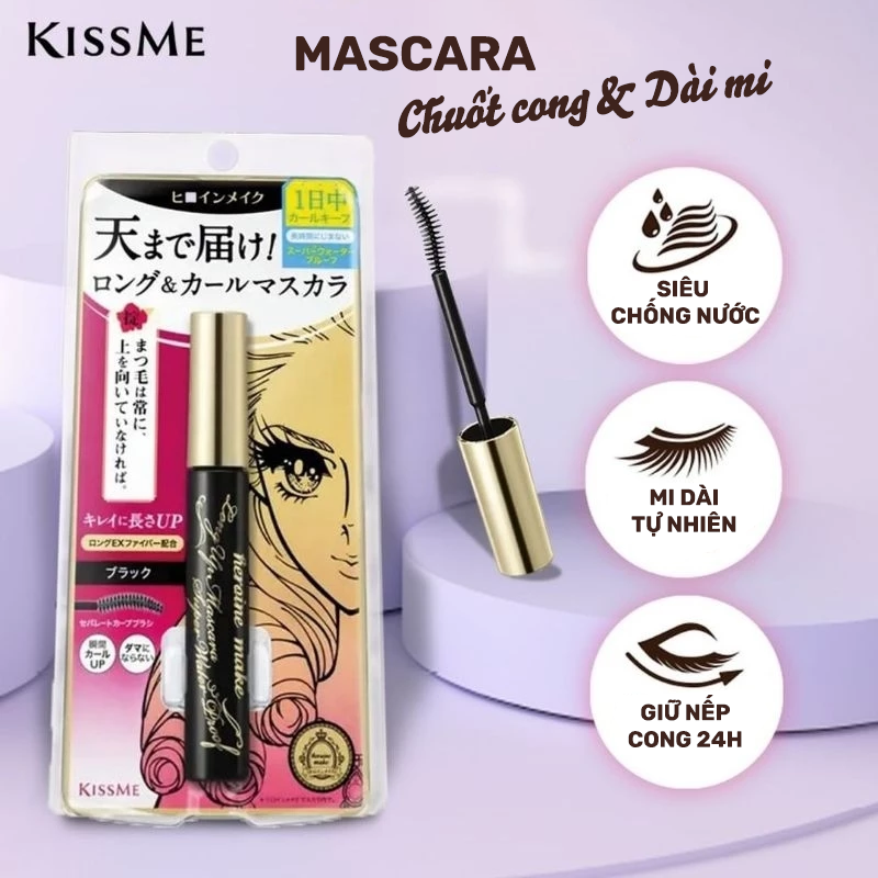 Mascara Làm Tơi Mi Không Trôi Kissme Heroine Make (1.8G) Thông tin sản phẩm: Số Lô: In trên sản phẩm Xuất Xứ: Nhật Bản Khối lượng tịnh: 1.8g HSD: 5 năm kể từ ngày sản