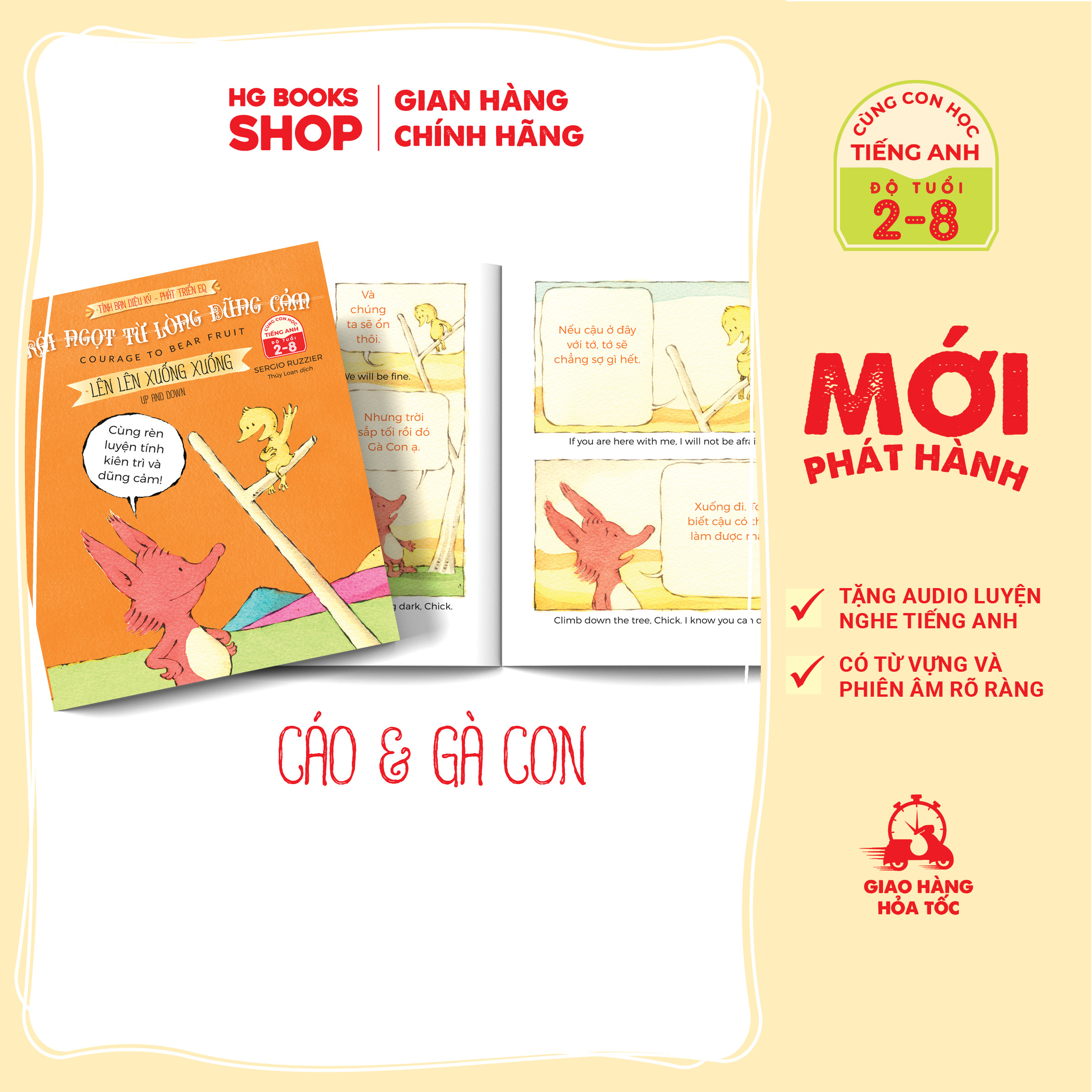 - Công ty phát hành: CÔNG TY TNHH HG BOOKS • Bộ sách được mua bản quyền và dịch ra nhiều ngôn ngữ như: tiếng Trung, tiếng Tây Ban Nha, tiếng Ý, tiếng Pháp, tiếng Nhật, tiếng Hàn… • Số lượng tiêu thụ hàng triệu bản dù mới ra mắt • Tập truyện lẻ “Bữa Tiệc Rắc Rối” trong cuốn Phép màu từ thói quen gọn gàng thậm chí đã giành được vô số giải thưởng khi vừa ra mắt như: A 2019 Theodore Seuss Geisl Award Honoree; A Publishers Weekly Best Book of the Year; A School Library Journal Best Book of the Year; An ALA Notable Children’s Book; A NPR Best Book of the Year; Boston Globe Best Book of the Year; New York Times Notable Book of the Year; The Huffington Post Best Picture Books of the Year... Tình bạn diệu kỳ và 101 bài học bổ ích cho bé! Cáo & Gà Con là đôi bạn thân. Cả hai đã có rất nhiều cuộc phiêu lưu cùng nhau. Họ rất vui vẻ nhưng không phải lúc nào cũng đồng quan điểm. Tuy nhiên, dù có bất cứ chuyện gì xảy ra, hai bạn ấy vẫn tìm ra được cách giải quyết vấn đề vô cùng độc đáo. Bộ truyện tranh cực kỳ dễ thương này bao gồm các mẩu truyện nhỏ, mỗi câu chuyện là một tình huống giúp bé học cách ứng xử và những đức tính tốt đẹp như: Biết sẻ chia, thói quen gọn gàng, rèn luyện đức tính dũng cảm, biết cách yêu thương mọi người... Bộ sách gồm 4 cuốn, mỗi cuốn là 3 câu chuyện nhỏ dễ thương đi kèm bài học vô cùng sâu sắc trong quá trình hình thành và phát triển tính cách của trẻ. Có thể nói đây là một lựa chọn tuyệt để cha mẹ đọc cho bé nghe trước giờ đi ngủ. ✷ THÔNG TIN SÁCH: Series 6 cuốn Chú Khủng Long Tham Ăn - The Dinosaur That Pooped (CÓ KÈM FILE NGHE)