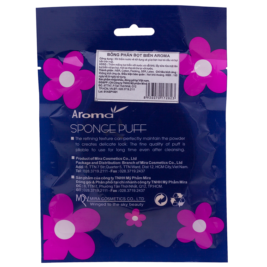 Bông phấn bọt biển massage mặt AROMA được sản xuất theo công nghệ cao của Hàn Quốc nên có độ mềm, mịn, dẻo, đạt tiêu chuẩn trang điểm chuyên nghiệp.