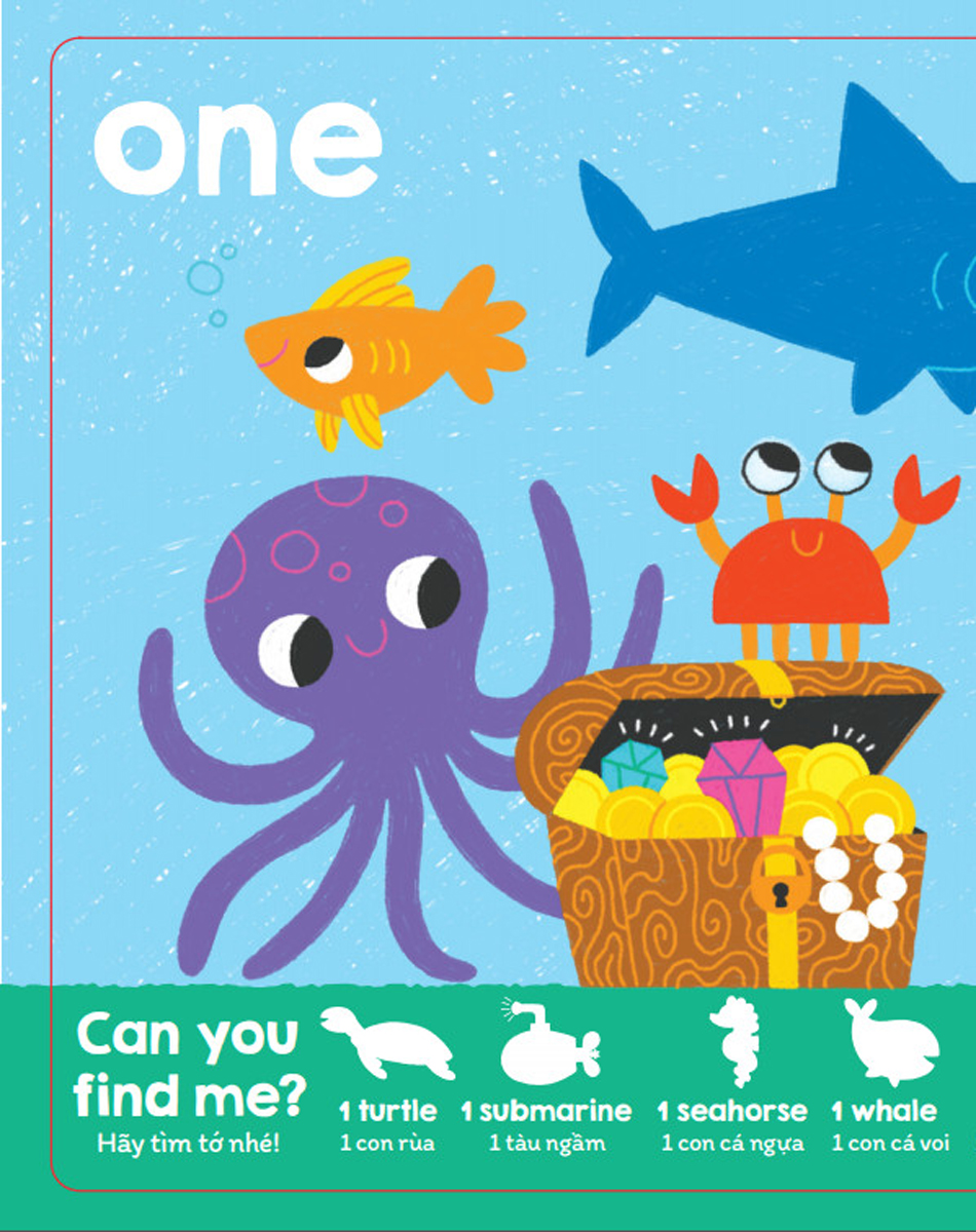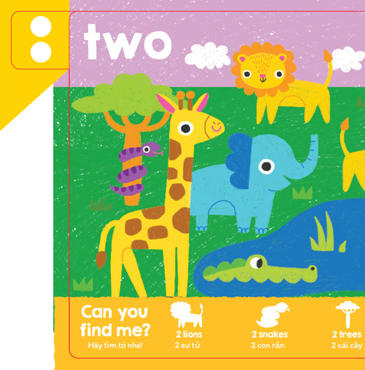 Cuốn sách mang chủ đề về các chữ số đơn giản trong tiếng anh. Các bé sẽ vừa phát triển tư duy logic khi học về các con số, vừa có thể phát triển khả năng quan sát qua từng trang sách. Màu sắc tương phản, bắt mắt, rất phù hợp để bé phân biệt, nhận biết con số.