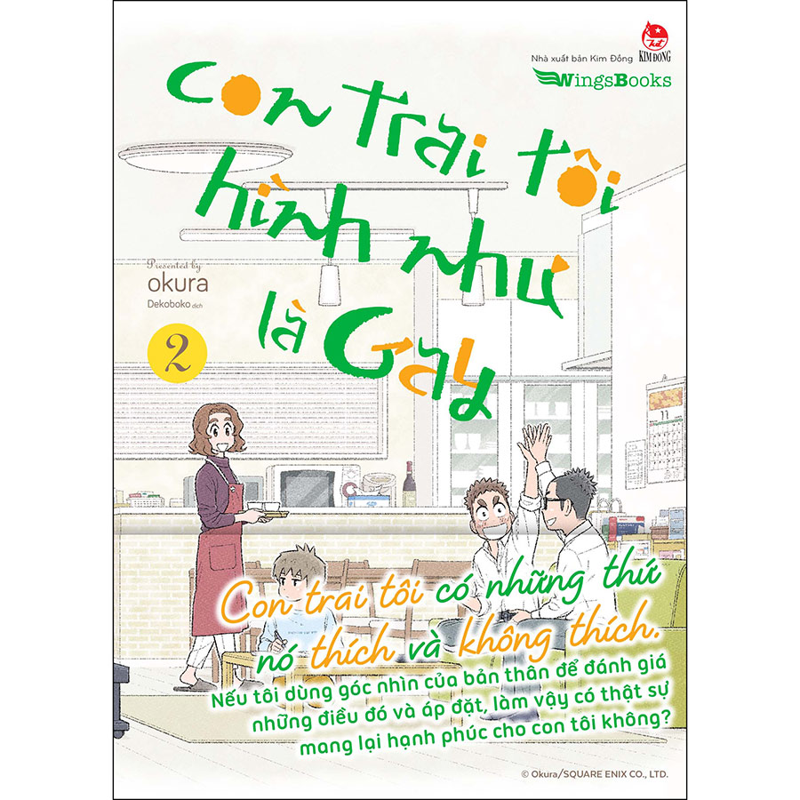 WINGS BOOKS - Thương hiệu sách trẻ của NXB Kim Đồng hân hạnh gửi đến các bạn độc giả bộ truyện tranh slice-of-life ấm áp về hành trình thấu hiểu con trai mình của một người mẹ. Con Trai Tôi Hình Như Là Gay trọn bộ 5 tập. Con Trai Tôi Hình Như Là Gay – Tập 2 – Tặng kèm 01 Mini-card và 01 Bìa áo 2 mặt chỉ có ở bản in đầu.