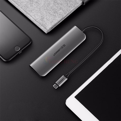1. Hub đa năng 6 trong 1 Ugreen 80129 giúp bạn mở rộng từ 1 cổng USB Type C sang các cổng khác như HDMI, USB 3.0, khe đọc thẻ nhớ. Giúp bạn kết nối