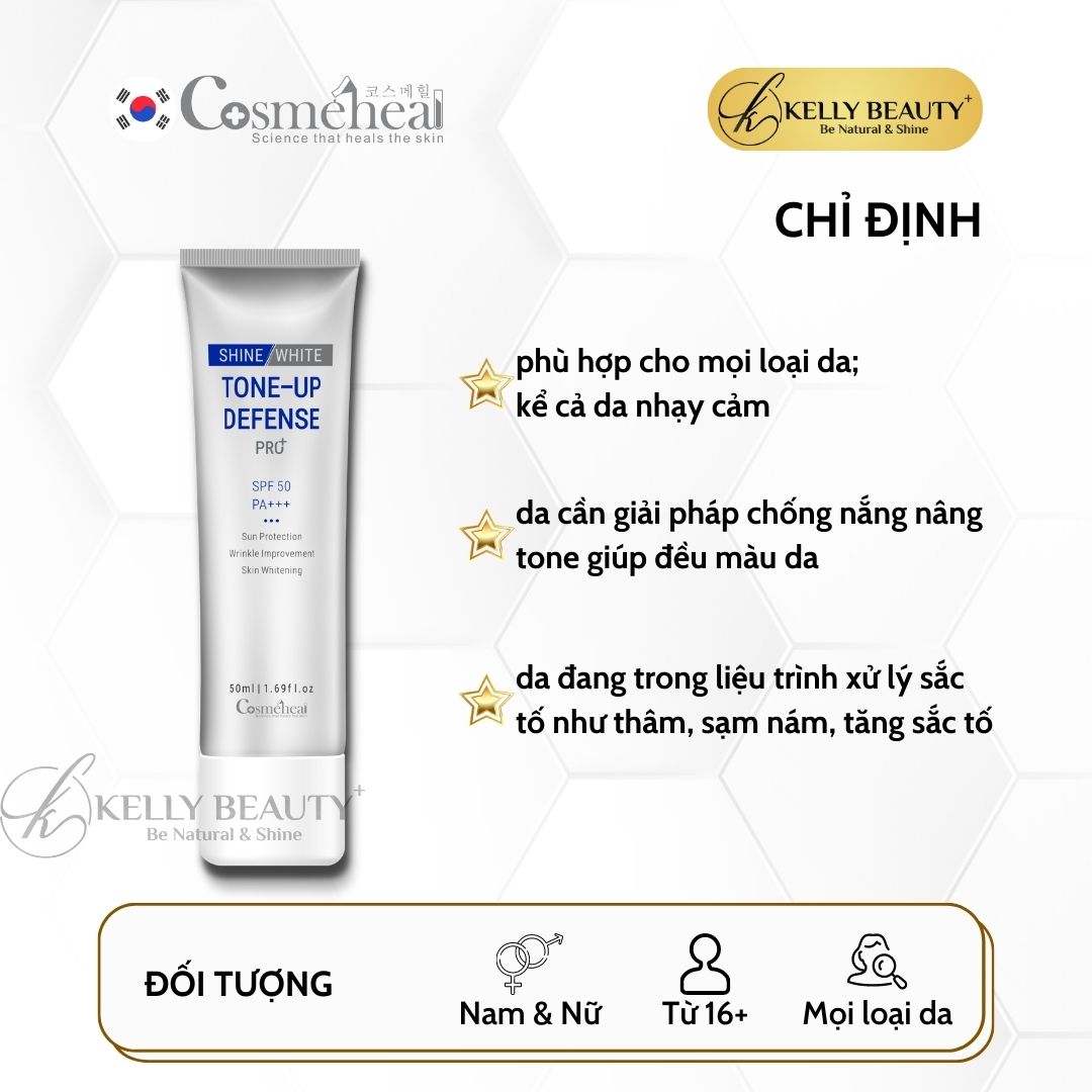 ✨Cosmeheal ToneUp Defense Pro+ SPF 50, PA+++ - Kem Chống Nắng Nâng Tone, Dưỡng Trắng, Bảo Vệ Da | Kelly Beauty
