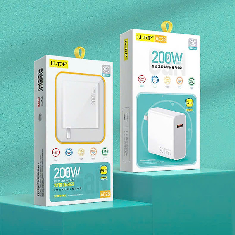 Củ sạc nhanh Gallium Nitride 200W LI-TOP AC28, đạt chứng nhận 3C tiêu chuẩn quốc gia, dùng thử 30 ngày, cho dùng thử 30 ngày hoàn trả