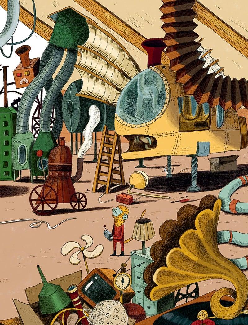Ngày nào cũng vậy, ngay khi màn đêm vừa buông xuống, Nico lại tới nơi bí mật của cậu: Xưởng Máy. Ở đó có Khỉ đuôi sóc, người bạn chí cốt của Nico. Tối nay, hai bạn chỉnh sửa tỉ mỉ lần chót cỗ máy mới: một cỗ máy đặc biệt dùng để thám hiểm đáy biển.