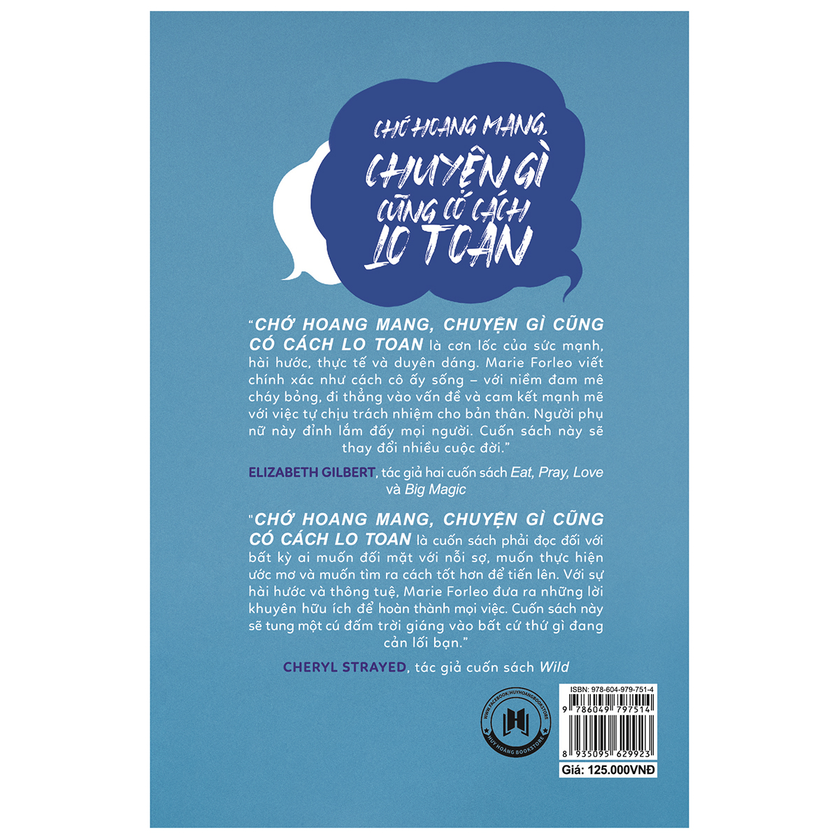 Được viết bởi Marie Forleo, một người vô cùng thông minh, dễ gần và năng nổ, Chớ hoang mang, chuyện gì cũng có cách lo toan là một cuốn sách dễ đọc, truyền cảm hứng, đôi khi hài hước nhưng mang thông điệp rõ ràng: Bạn có thể làm bất cứ điều gì bạn thực sự muốn, chỉ cần kiên trì và sẵn sàng nổ lực để thực hiện nó.