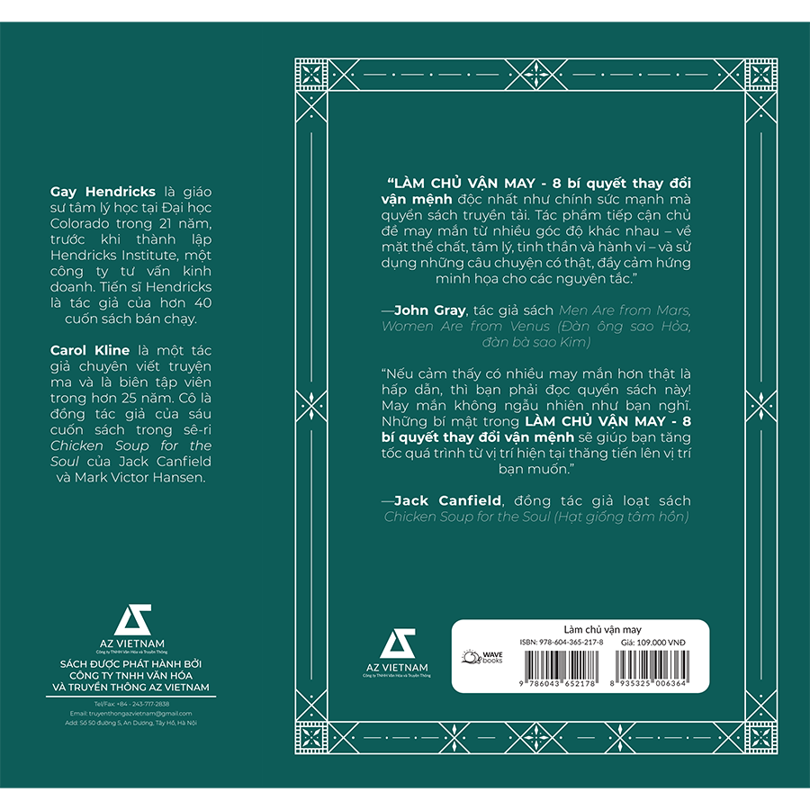 LÀM CHỦ VẬN MAY chứa đựng 8 Bí Quyết cho phép bạn chủ động thay đổi vận may, sẽ giúp bạn đạt được vận may vững chắc từ chính gốc rễ con người bạn. 4 bí quyết đầu tiên cho phép bạn thay đổi cốt lõi con người mình, tạo nền tảng vững chắc nuôi dưỡng vận may. 4 bí quyết tiếp theo là rèn luyện hằng ngày được xây dựng trên nền tảng đó, biến những thay đổi cốt lõi thành những thói quen nâng cao và tạo ra vận may đáng kể cho chính bạn.