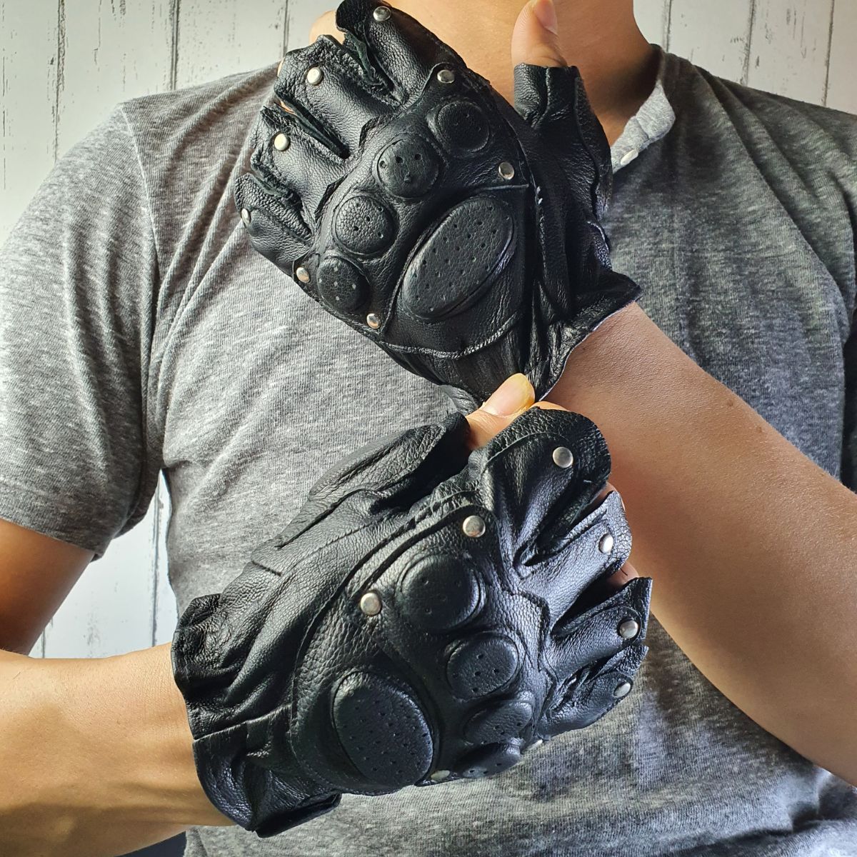 Găng tay hở ngón dành cho người đi moto - xe máy Chất liệu: Vải Airmesh, gù nhựa cứng, da lộn, lòng bàn tay có hạt cao su tăng độ bám Loại găng hở ngón