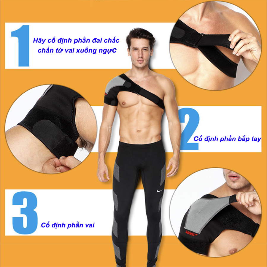 Đai bảo vệ vai là loại băng dán có thể điều chỉnh ở cánh tay và vòng ngực, băng chặt hay lỏng theo nhu cầu. Ngoài ra có thêm 1 lớp mút tăng cường bảo vệ bên trên khớp vài có thể điều chỉnh