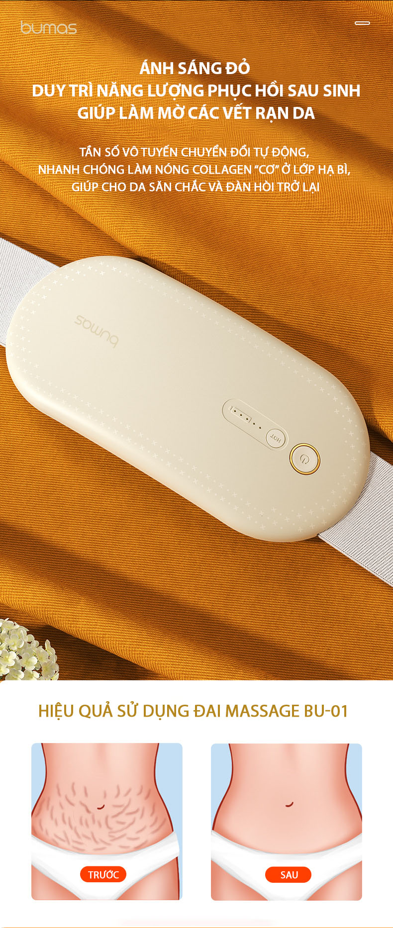 ✨Đai Chườm Nóng, Máy Massage Giảm Đau Bụng Kinh BUMAS BU01 - Hỗ Trợ Chống Lão Hoá Da Sau Sinh - Hàng Chính Hãng