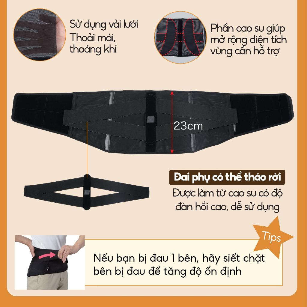 Đai bảo vệ lưng (loại cứng) với diện tích rộng sẽ hỗ trợ, hiệu quả hơn với nhiều phần có thể tháo lắp. Là sự hỗ trợ sức khỏe tuyệt vời, mang lại sự thoải