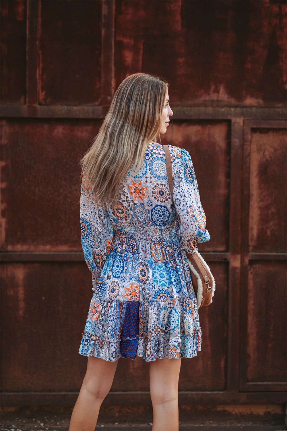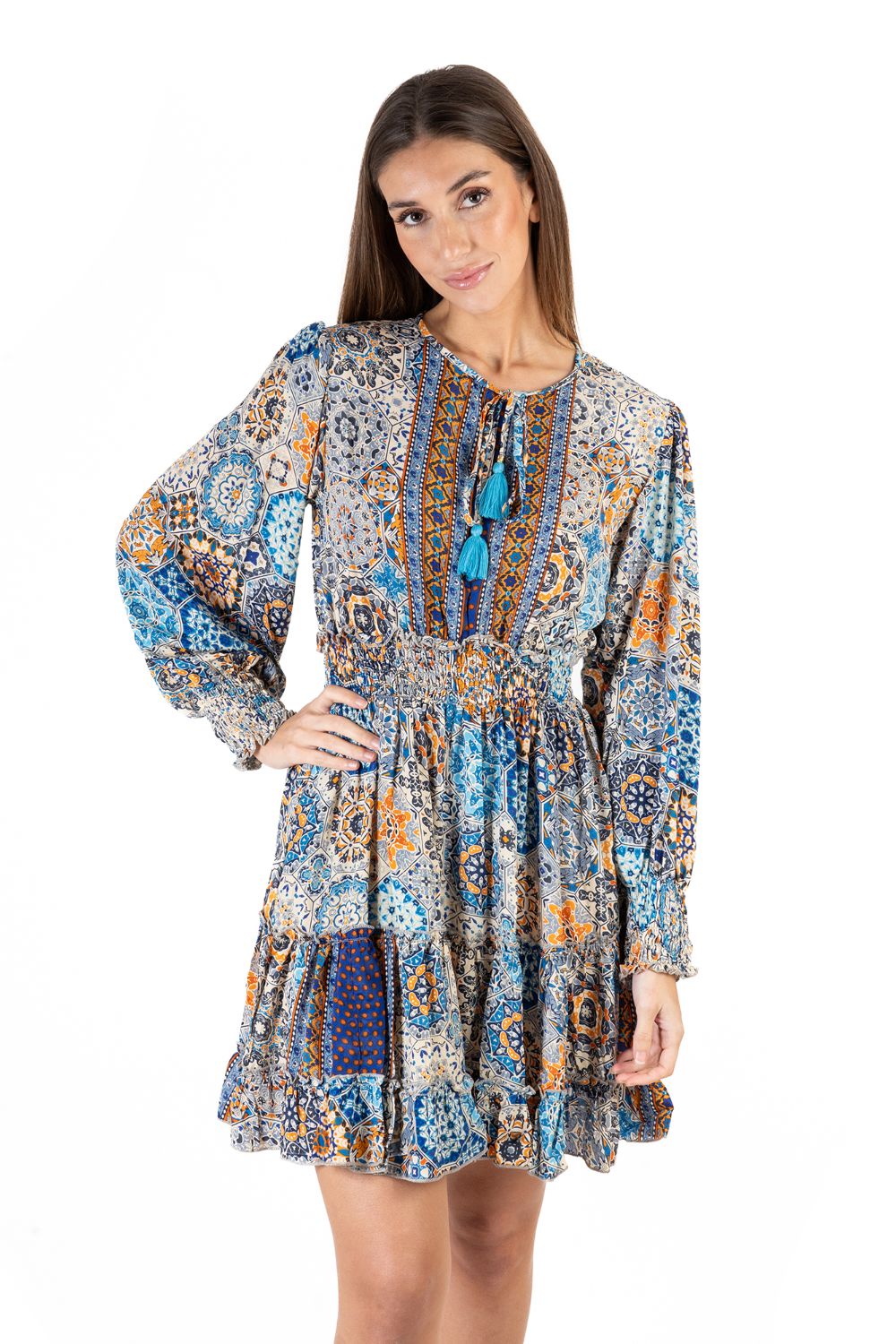 Đầm Boho Dài Tay Isla Bonita, chất lụa cao cấp, mềm mại, thun co giãn ở eo. Phom suông xòe rộng. Dài đầm 90cm (45x90)