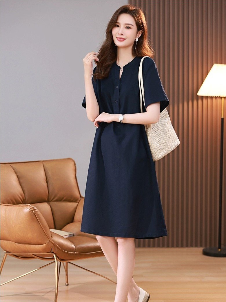 ღ THÔNG TIN SẢN PHẨM:   Tên sản phẩm: Đầm sơ mi xanh navy   Chất liệu: Chất gân ý   Chi tiết sản phẩm: không lót, không túi   Thông số size: S, M, L,