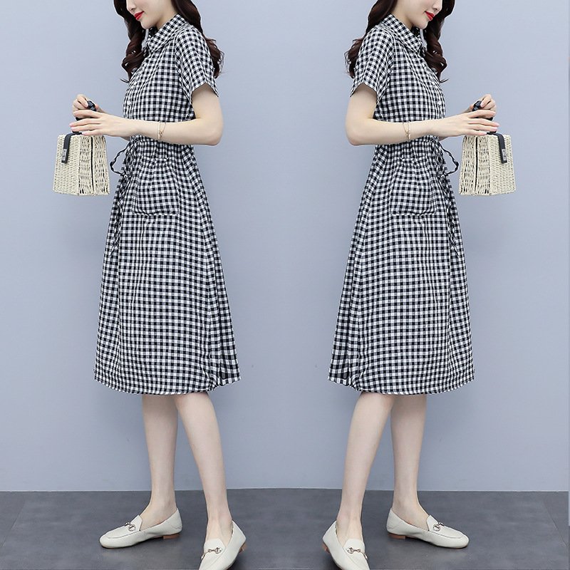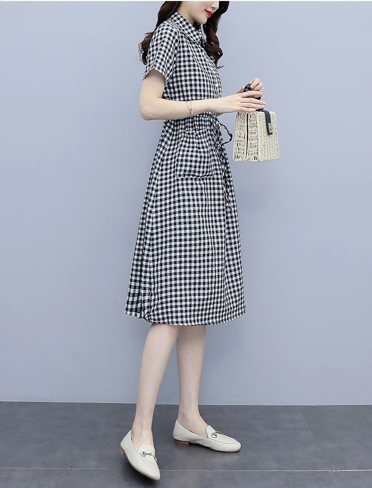 ✨Đầm đũi nữ ngắn tay, họa tiết kẻ caro trẻ trung, 2 túi bên thời trang, đầm có dây rút eo tôn dáng NH174