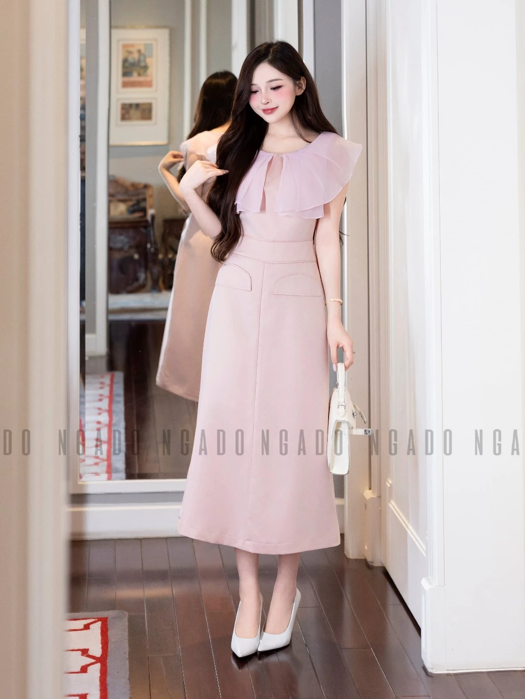 ✨Đầm hồng phối voan NGADO , đầm dự tiệc , đầm công sở