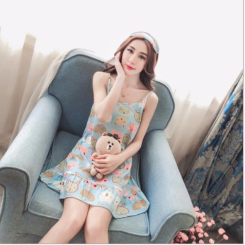 ✨Đầm ngủ chất liệu cotton, đầm mặc nhà hoạ tiết hình heo dễ thương vn28
