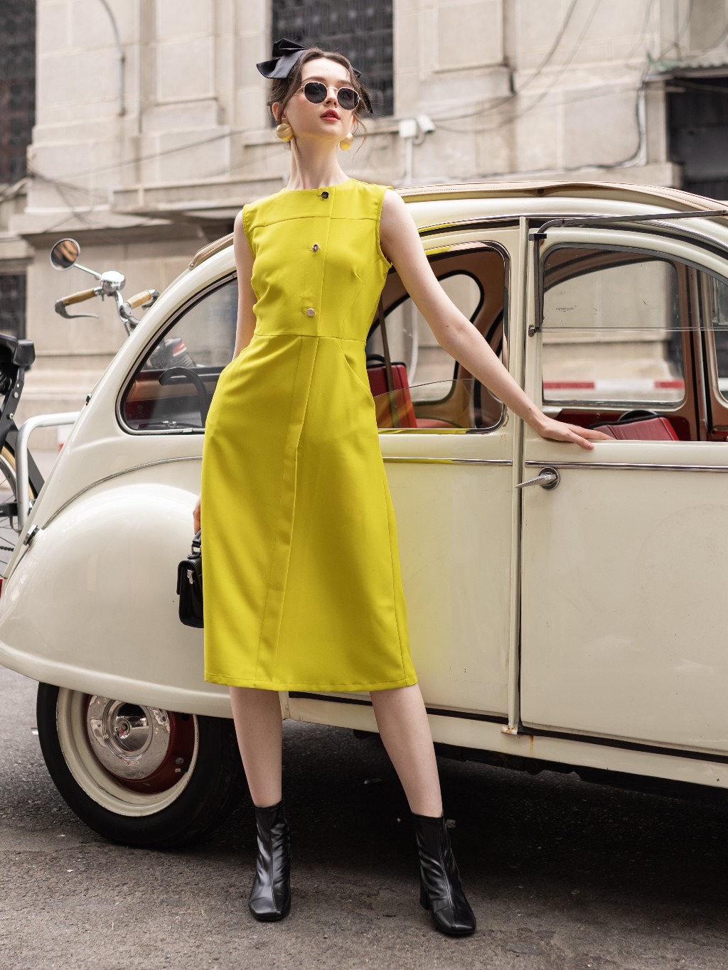 Đầm suông đuôi cá vạt xéo Mã: DZES003 Màu: Vàng chanh Chất liệu: Lyocell Số đo vòng1/vòng2/vòng3/rộng vai/dài đầm(cm): 93/78/116/37,5/115 Gợi ý mix đồ: Có thể phối với các kiểu dây nịt da hoặc dây