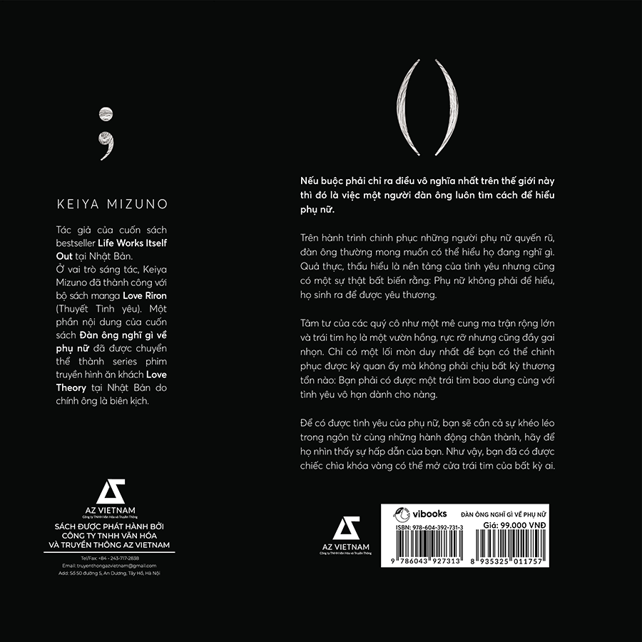 Cuốn sách “Đàn ông nghĩ gì về phụ nữ” của Keiya Mizuno sẽ mang đến tấm bản đồ hành trình cho những ai sắp du hành trong đại dương tình ái với những bài học về tình yêu được đích thân tác giả nghiên cứu và trải nghiệm thực tế qua nhiều lần thất bại để đúc kết và viết nên. Qua đó, bạn sẽ có được chiếc chìa khóa vàng để có thể mở cửa trái tim của bất kỳ ai.