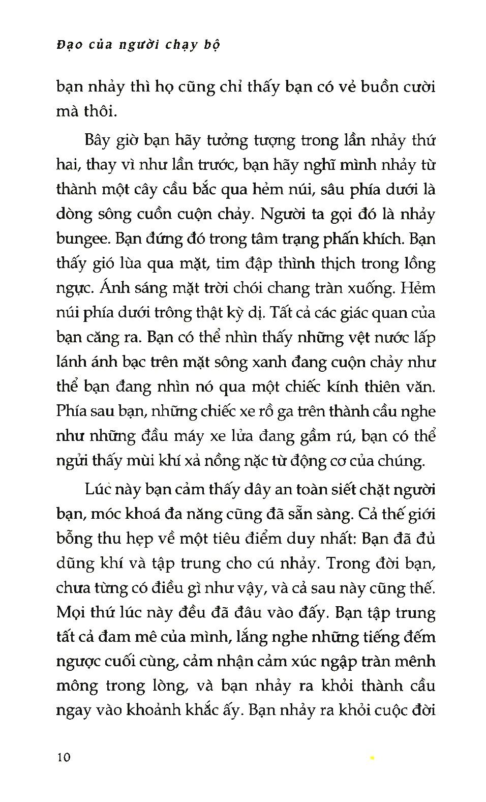 Tập bút ký, bình luận của cây bút bình luận thể thao nổi tiếng về hoạt động chạy bộ. Tác giả đi từ chính những trải nghiệm của mình cho đến những khám phá sâu sắc về tinh thần của những người đam mê chạy bộ. Người đọc không chỉ nhận thấy chạy bộ là hoạt động rèn luyện thể chất, mà còn biết cách khám phá ra những tiềm năng mới của bản thân, sử dụng chạy bộ như một phương pháp luyện tinh thần. Chạy bộ được nâng lên thành Đạo, là điểm tựa tinh thần cho những ai yêu thích hoạt động này và muốn cải biến cả thế giới tư tưởng của mình.