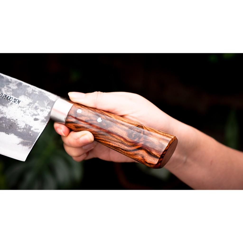 Tên sản phẩm: Dao Phúc Sen, Dao Tông Chặt Gà Cán Gỗ Thường - Chất liệu: 100% thép nhíp ô tô được lựa chọn và kiểm duyệt kỹ càng. - Chất liệu cán: gỗ sao