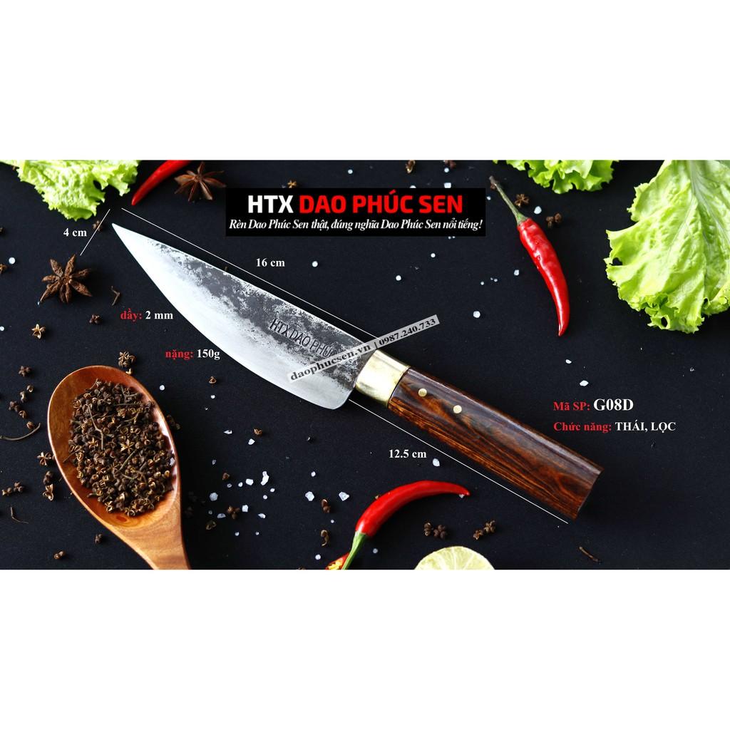 Dao Phúc Sen Dao Bầu Lọc 16 Cán cẩm Khâu Đồng G08D - Kích thước: lưỡi: 16cm, cán: 12cm, rộng: 4,5cm, dầy: 0,1, trọng lượng: 150g - Chức năng: sử dụng chuyên lọc cá thịt