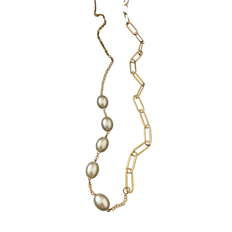 Dây chuyền vòng cổ kim loại hợp kim mix hạt châu nhân tạo sang chảnh nam và nữ cá tính
