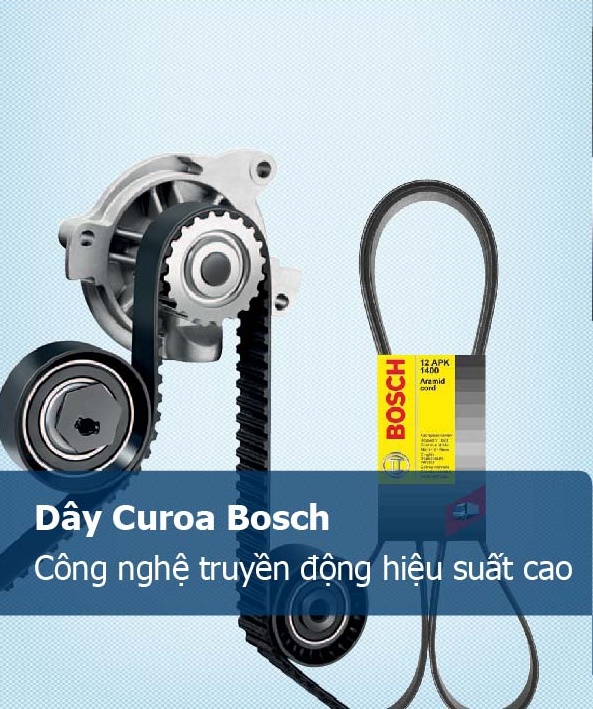 Dây curoa truyền động Bosch được cấu tạo bởi các sợi dây chịu lực bằng Polyester kéo căng ở mặt trước. Mặt sau lưng được tăng cường bằng vải có độ bền cao sợi và các sợi dây chịu lực bằng sợi thủy tinh bện xoắn để đảm bảo mức độ bền vững của mặt bên. Các đặc trưng này của dây curoa truyền động Bosch mang đến mức độ bảo vệ cao nhất cho động cơ xe.