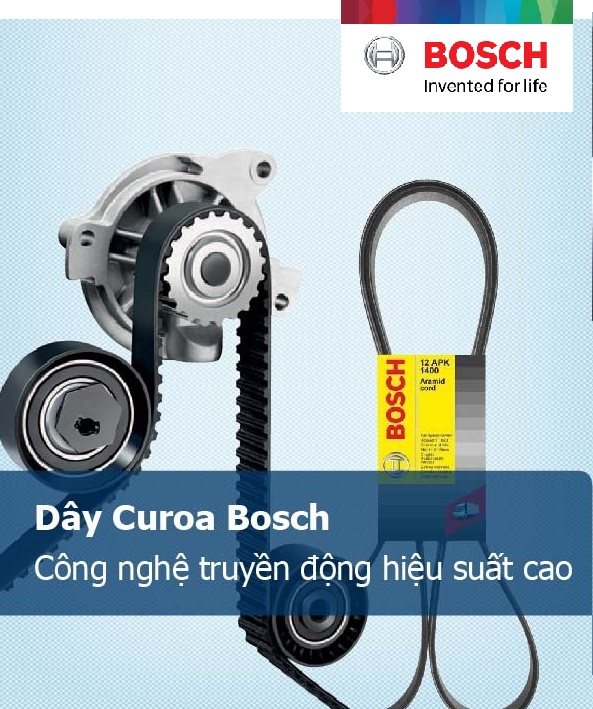 Mô tả sản phẩm Dây cam Bosch :– Lớp vải sợi bọc ngoài với cấu trúc sợi chéo– Các dây chụi lực kéo bền, chắc và kéo căng– Cao su chụi nén do tăng cường phần tử dạng sợi– Vải sợi mặt đáy nhiều lớp– Răng đúcLợi ích:– Bền, chắc, chống mài mòn, không mất độ đàn hồi– Dây ít bị kéo giãn và cho công suất cao hơn– Hệ số ma sát lớn, chống mòn tuyệt vời, độ đàn hồi cao– Chống nức, độ dẻo dai cao, chụi dầu, chụi nhiệt– Thiết kế độc đáo, tuổi thọ uốn cong cao