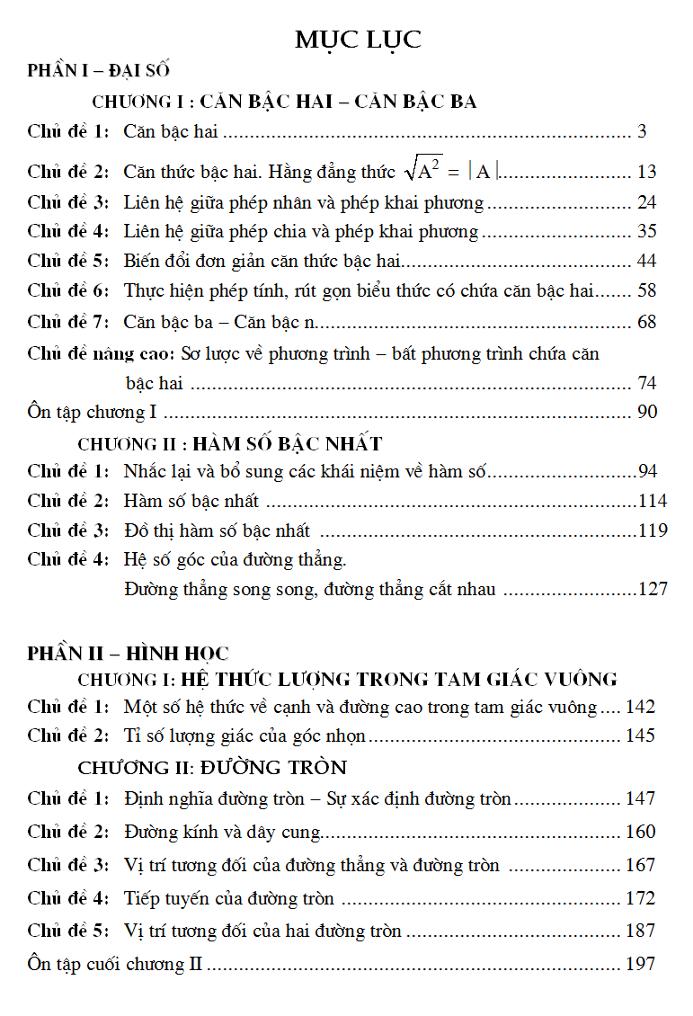 - Cung cấp cho các em học sinh THCS yêu thích môn Toán một bộ sách tự học tập dễ hiểu và bổ ích. Nó chắc chắn sẽ trở thành người bạn đồng hành để giúp các Em chủ động hơn trong việc học Toán theo chương trình sách giáo khoa và mở mang kiến thức Toán THCS của bản thân. Các cuốn Toán 9 tập 1 đều có chung một cấu trúc, bao gồm hai phần: Phần I – Số học hoặc đại số Phần II – Hình học: Mỗi phần chứa đựng các chương (chương I, chương II, ). ở mỗi chương chứa đựng các chủ đề (chủ đề 1, chủ đề 2, ) theo nội dung của sách giáo khoa. Mỗi chủ đề đều được chia thành 5 mục: I. Kiến thức cơ bản: Trình bày có trật tự nội dung kiến thức liên quan (trong hầu hết các trường hợp chúng được bắt đầu bằng phương pháp đặt vấn đề) cùng với những thí dụ minh hoạ ngay sau đó. II. Các ví dụ minh hoạ: Gồm các ví dụ được tuyển chọn có chọn lọc nhằm giúp hoàn thiện kiến thức cơ bản và nâng cao kỹ năng giải Toán. III. Câu hỏi ôn tập lý thuyết IV. Bài tập đề nghị V. Hướng dẫn - Đáp số