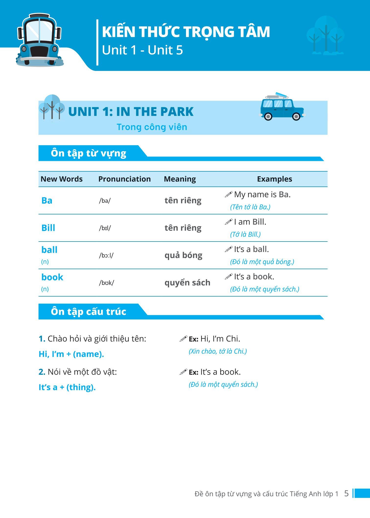 ÔN TẬP CẤU TRÚC: Giới thiệu những mẫu câu theo chủ đề bài học kèm ví dụ cụ thể để các em dễ dàng ghi nhớ và vận dụng đúng ngữ pháp.