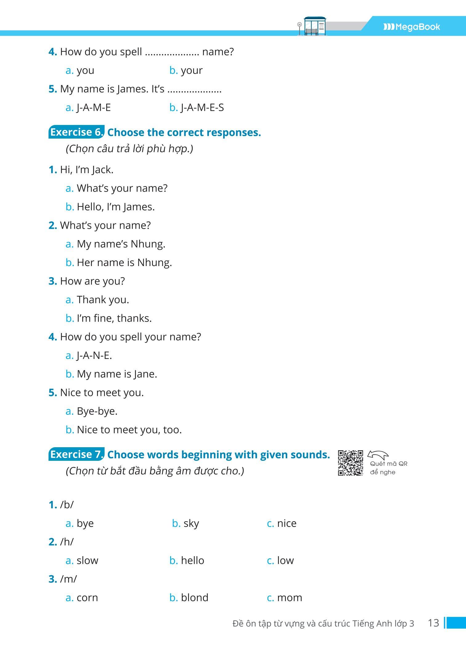 Megabook mong rằng, đây sẽ là cuốn sách bổ ích, hỗ trợ đắc lực cho các con trên con đường chinh phục môn tiếng Anh, cả về kiến thức ngữ pháp và luyện tập thực hành, để từ đó có thể hình thành phản xạ ngôn ngữ, giúp các con tự tin sử dụng môn ngoại ngữ này.