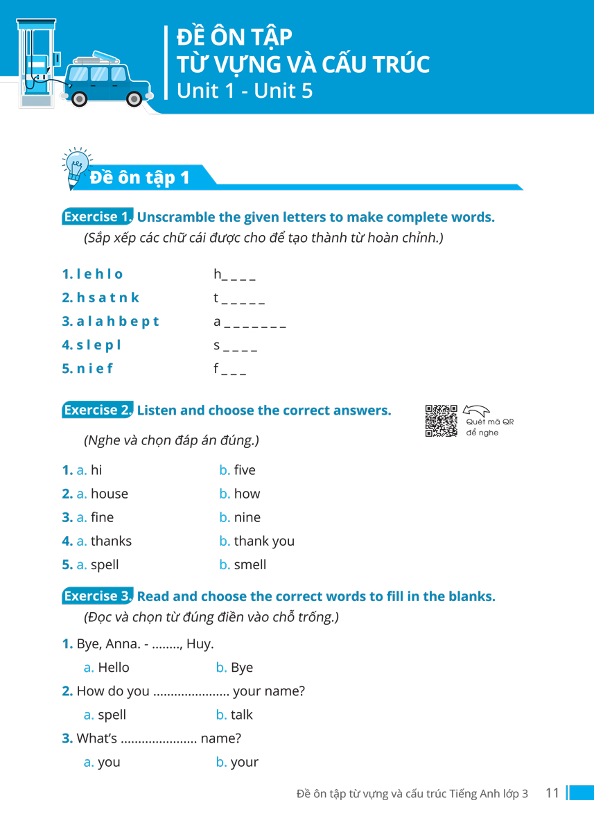 Đề Ôn Tập Từ Vựng Và Cấu Trúc Tiếng Anh Lớp 3 Bộ sách Đề Ôn Tập Từ Vựng Và Cấu Trúc Tiếng Anh đã hệ thống toàn bộ kiến thức và xây dựng bài