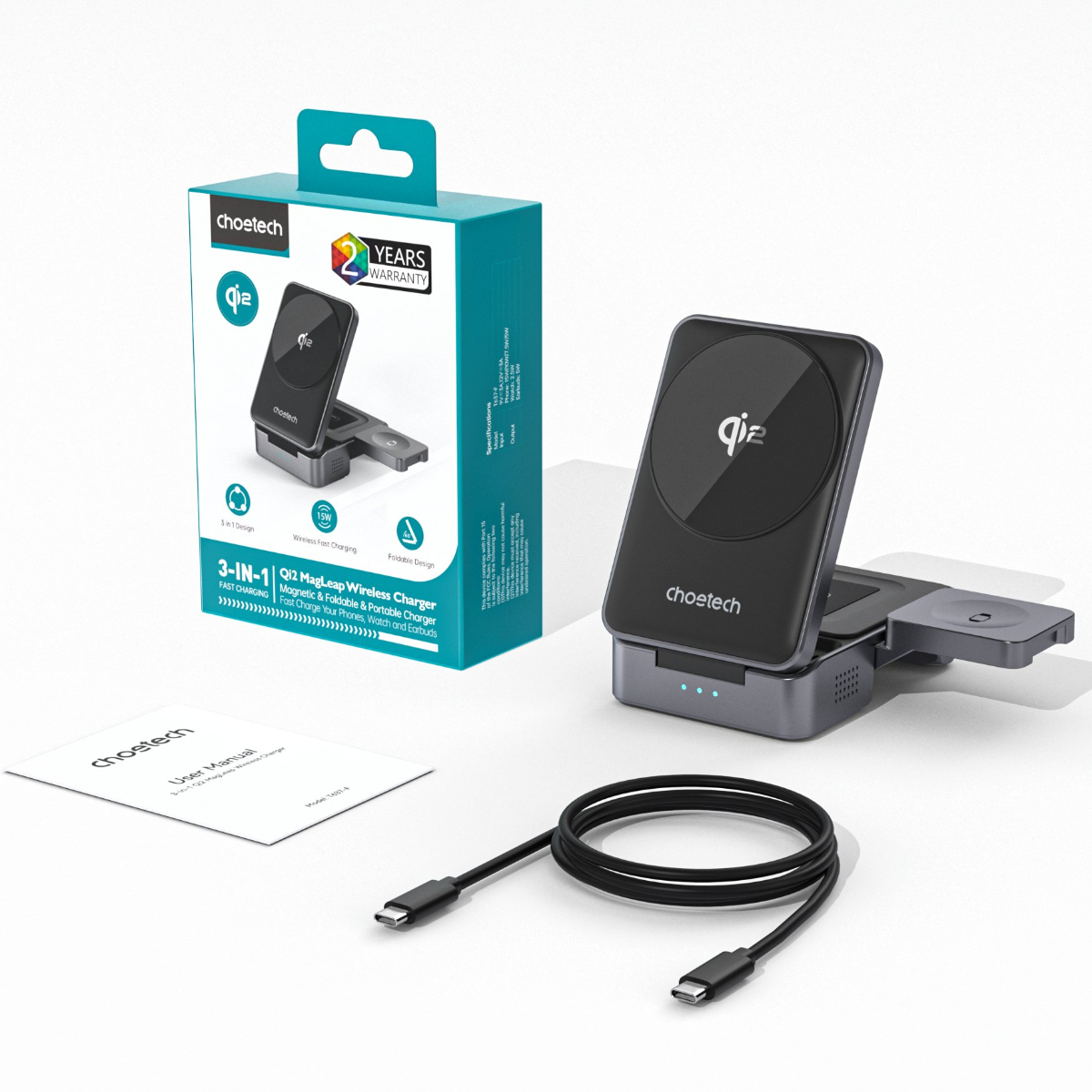 ✨Đế sạc nhanh không dây 3 in 1 công suất 15W Choetech T637 chuẩn Qi2 - Hàng chính hãng