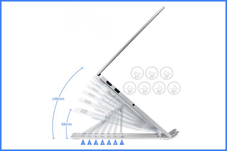 Giá đỡ máy tính xách tay với bảy bánh răng có thể điều chỉnh Giá đỡ máy tính xách tay gấp nhỏ gọn cho tất cả các loại máy từ 12 đến 18 inch