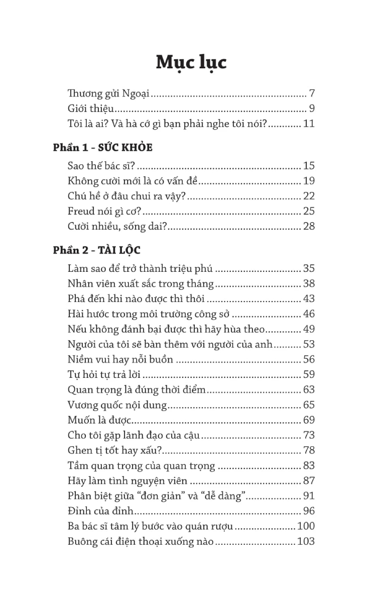 Tác phẩm thuộc mảng sách kỹ năng phát triển bản thân, với một chủ đề khá thú vị: dùng sự hài hước để giải quyết những vấn đề rắc rối trong cuộc sống, và khiến ta sống đời khỏe mạnh, giàu có và hạnh phúc hơn.
