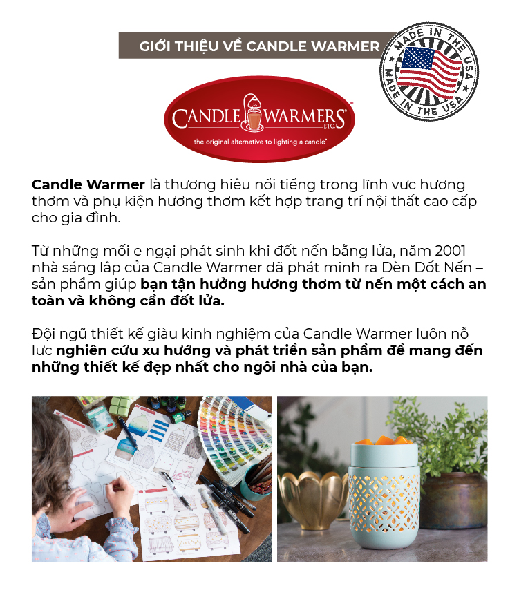 THÔNG TIN SẢN PHẨM: - Làm chảy sáp nến và lan tỏa hương thơm HƯỚNG DẪN SỬ DỤNG: - Cảnh báo: không để vật dễ cháy lên lồng đèn.